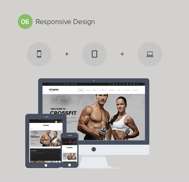 Ultra responsive Fitness s'adapte à votre grand écran de bureau, à votre iPhone et bien sûr à toute tablette ou iPad.